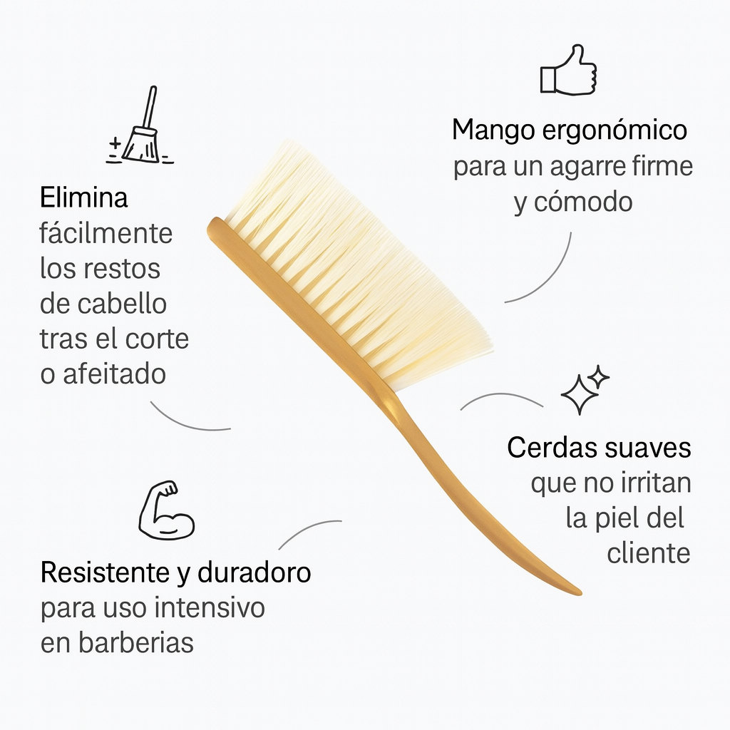 Un buen acabado no depende solo de la técnica, también de los detalles. Este Cepillo de Barbero con mango de plástico está diseñado para mantener tu espacio y a tus clientes libres de restos de cabello de forma cómoda y eficaz.