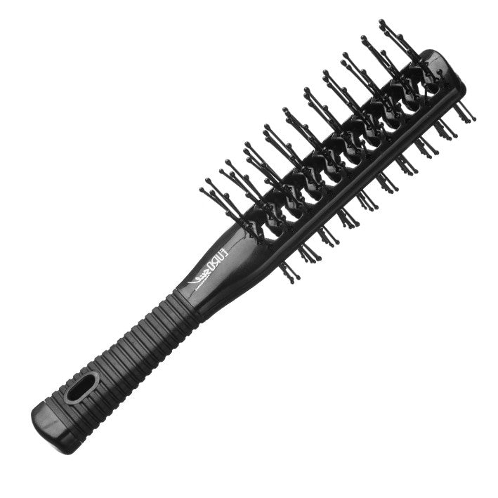 Este cepillo es ideal para todo tipo de cabellos. Sus púas con bola desenredan con suavidad, mientras su estructura esqueleto permite el paso del aire para acelerar el secado y reducir el daño por calor.