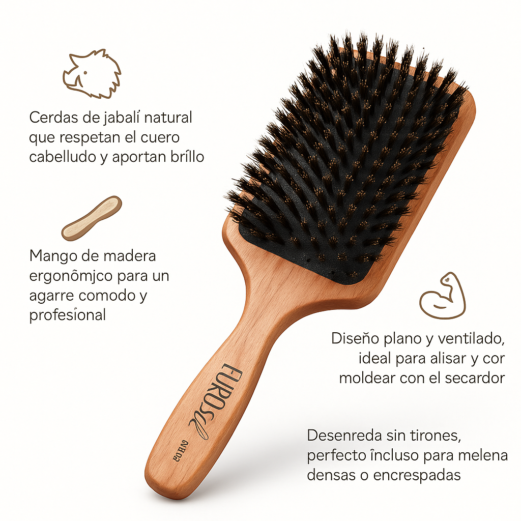 🐗 Cerdas de jabalí natural que respetan el cuero cabelludo y aportan brillo