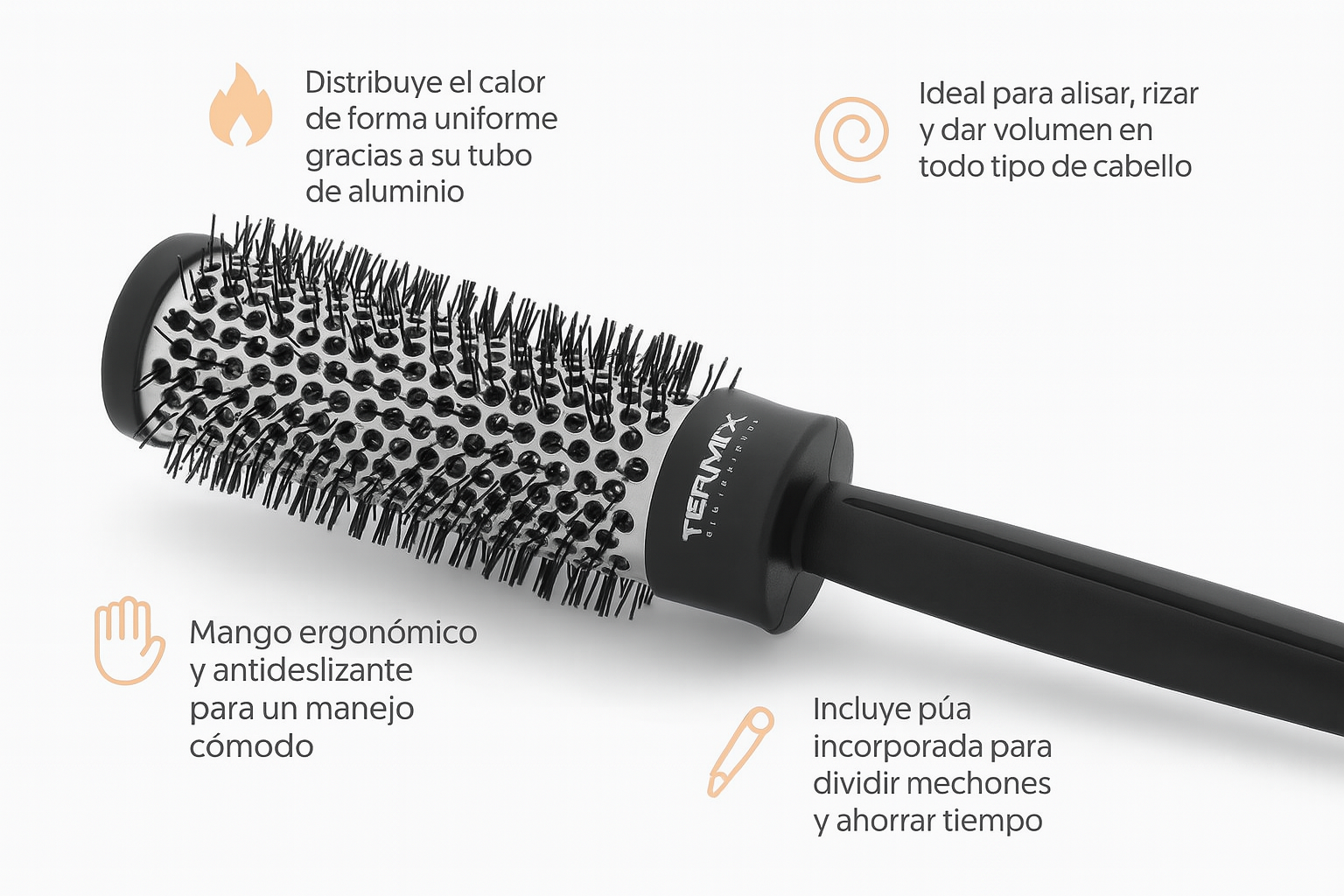 🧷 Incluye púa incorporada para dividir mechones y ahorrar tiempo