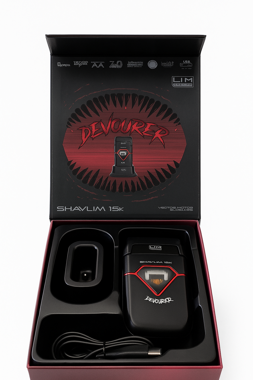 La Shavlim 15K Devourer es una afeitadora profesional diseñada para lograr un rasurado al mínimo, sin irritación y con una potencia inteligente que se adapta a cada pasada. Su motor vectorial alcanza hasta 15.000 RPM, garantizando un acabado ultra limpio incluso en uso intensivo.