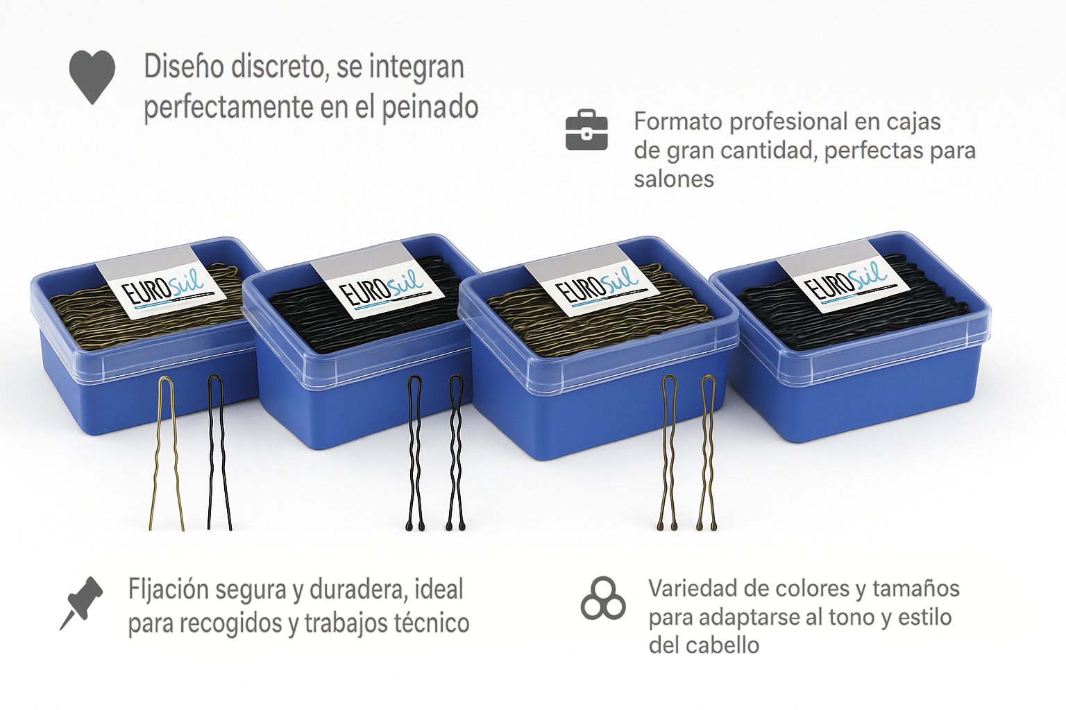 ¿Buscas sujeción profesional sin renunciar a la estética? Las horquillas y clips Eurostil ofrecen máxima fijación y discreción para cualquier tipo de peinado.