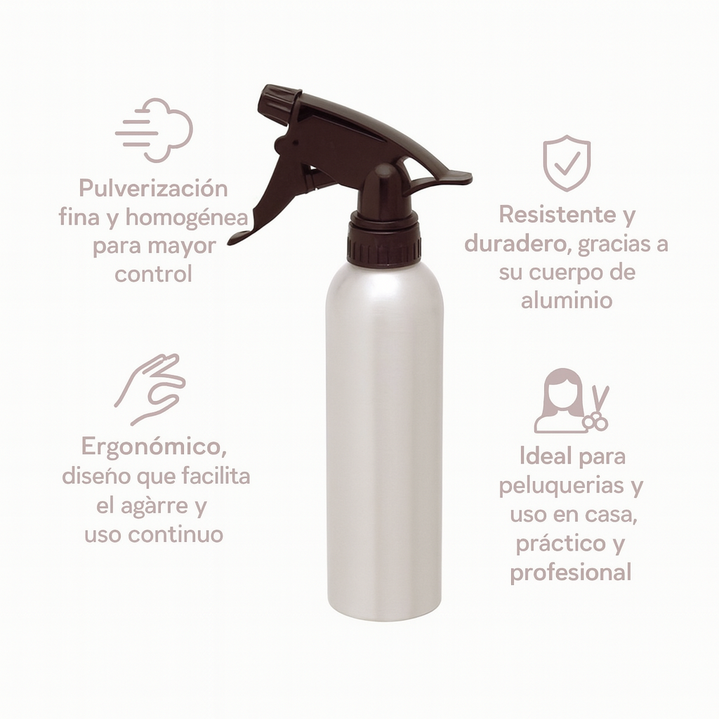El Pulverizador de Aluminio Steinhart está pensado para quienes buscan funcionalidad y durabilidad en una sola herramienta. Su mecanismo de presión asegura una niebla uniforme que ayuda a humedecer el cabello sin exceso de agua, optimizando el trabajo tanto en cortes como en peinados.